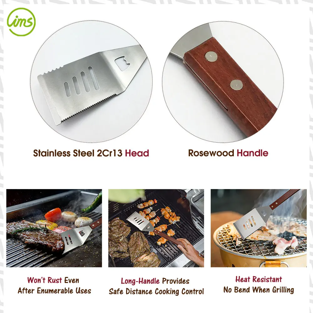 Perfect for outdoor grilling, BBQ parties, camping, and backyard cookouts. Ideal for flipping steaks, burgers, fish, and vegetables while keeping hands safe from flames. The rosewood handle and heavy-duty design make it suitable for both professional chefs and home barbecue enthusiasts.
