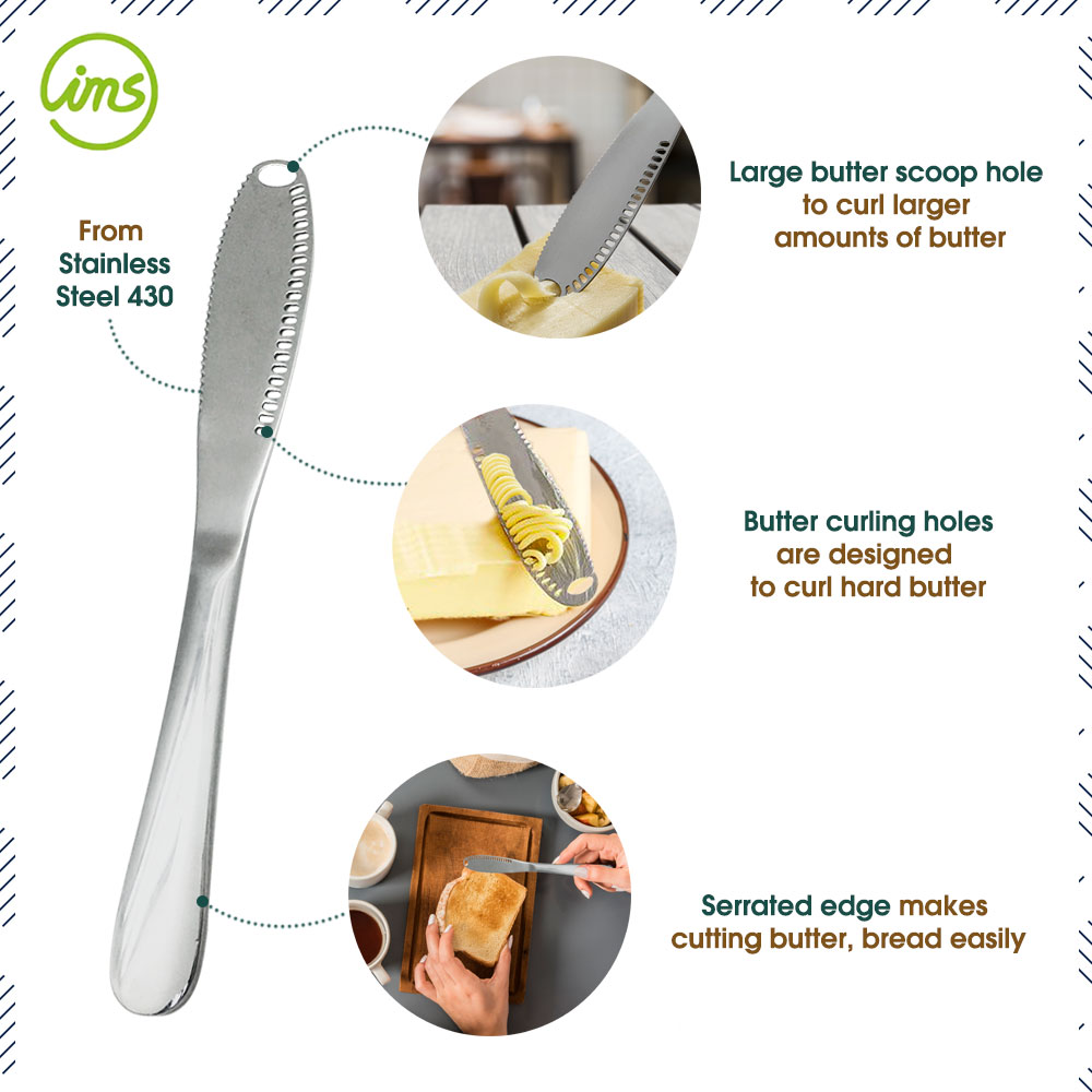 Stainless Steel Butter Knife Spreader with Slots – Cheese & Butter Curler