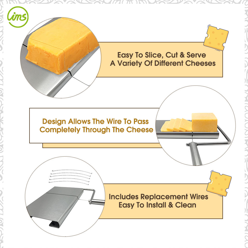Make cheese slicing effortless with this Stainless Steel Cheese Slicer Board with Wire. Built from durable stainless steel 430 with a sharp SS304 wire, it delivers precise cuts every time. The sturdy design ensures stability while slicing, and the included replacement wires make it a long-lasting kitchen essential. Perfect for both home use and professional kitchens.