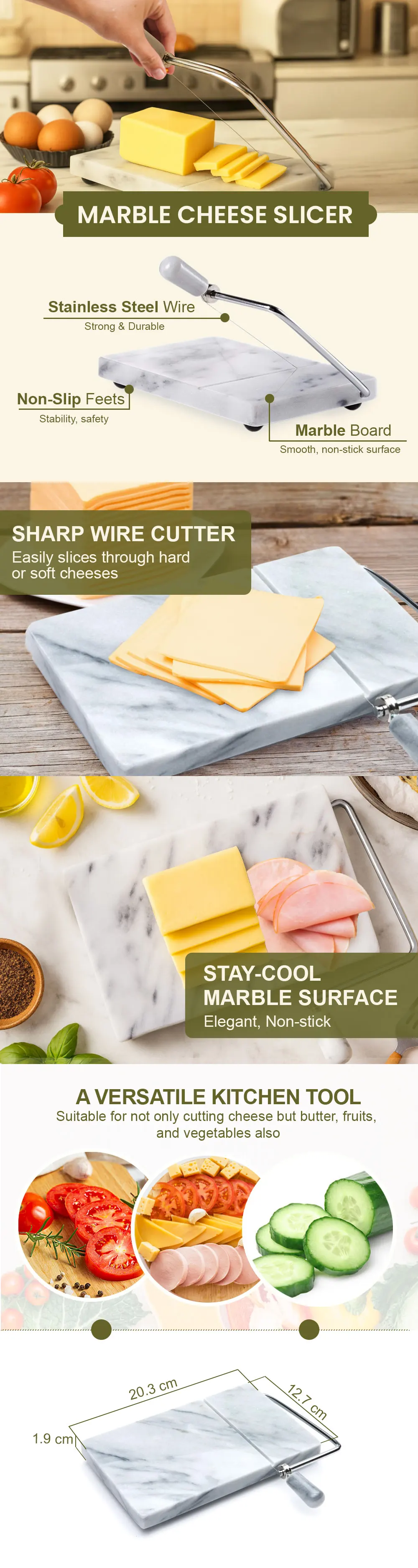 Its stay-cool, non-stick marble surface keeps cheese fresh and firm, while non-slip feet ensure stability for safe, controlled cutting.