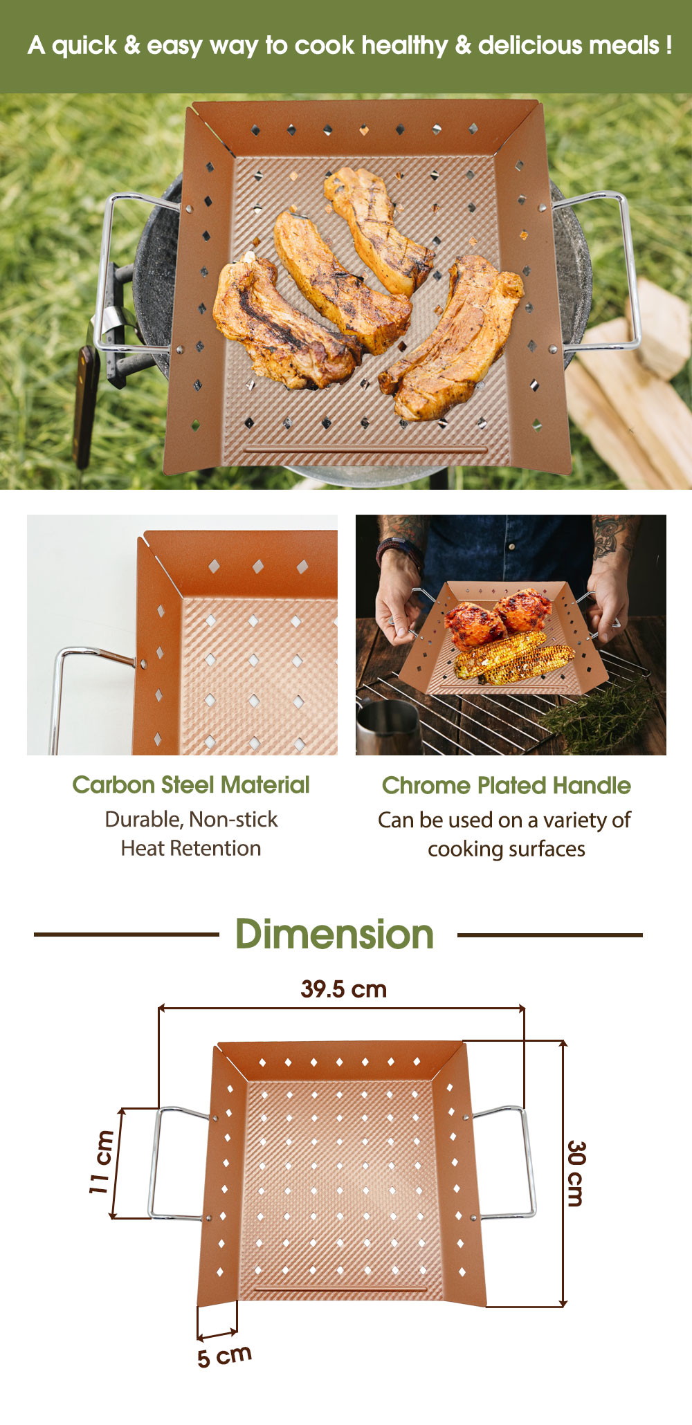 Perfect for grilling steak, ribs, shrimp, corn, or mixed vegetables. Ideal for backyard BBQs, picnics, tailgate parties, and outdoor camping adventures — offering an easy, mess-free grilling experience every time.