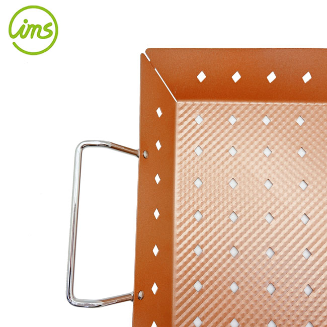 Features: Non-stick, perforated design, durable, heat-retaining, easy to handle