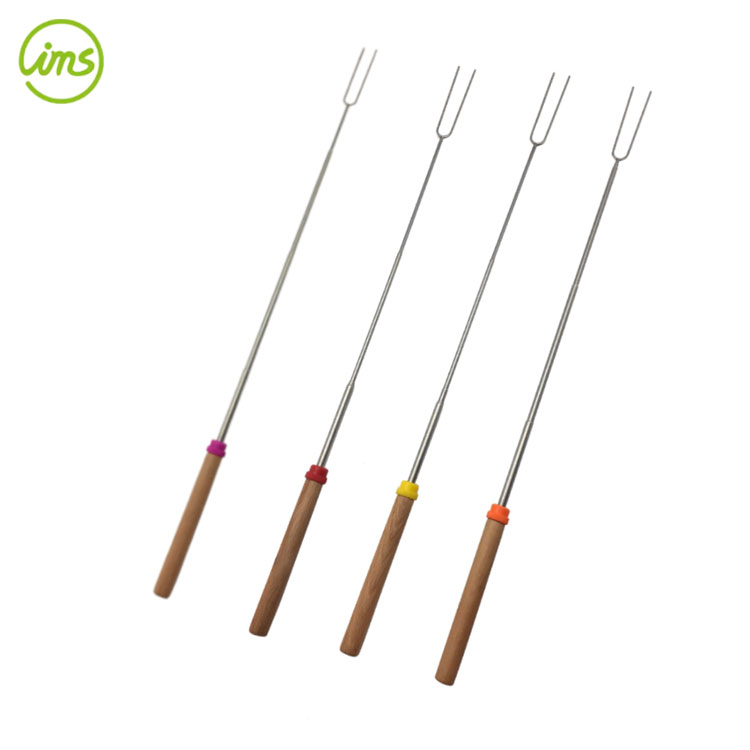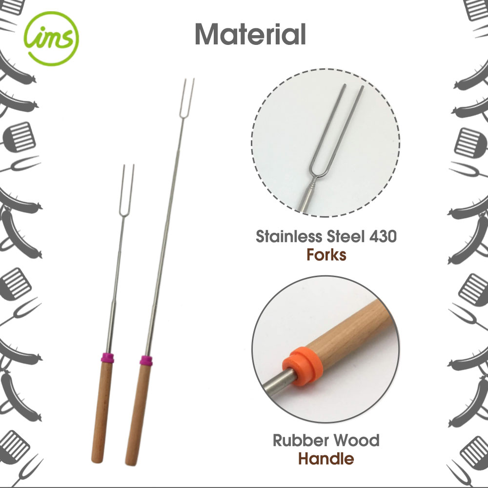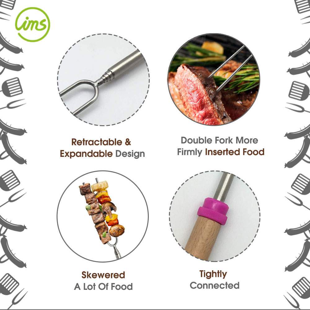 Telescopic Stainless Steel BBQ Forks with Wooden Handles – 72cm Extendable Grill Skewers