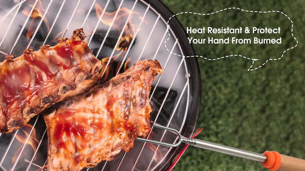 Double-Prong Fork: Holds food securely to prevent slipping while turning or roasting.