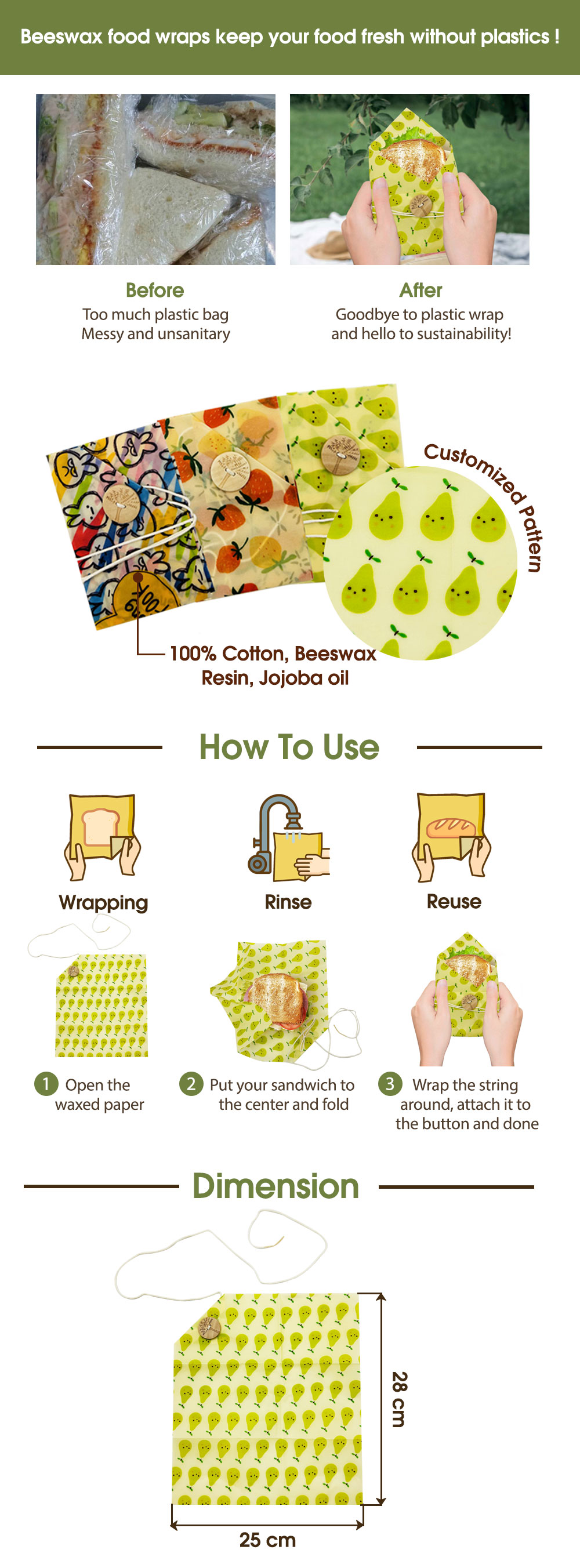 Material: 100% cotton, beeswax, resin, jojoba oil