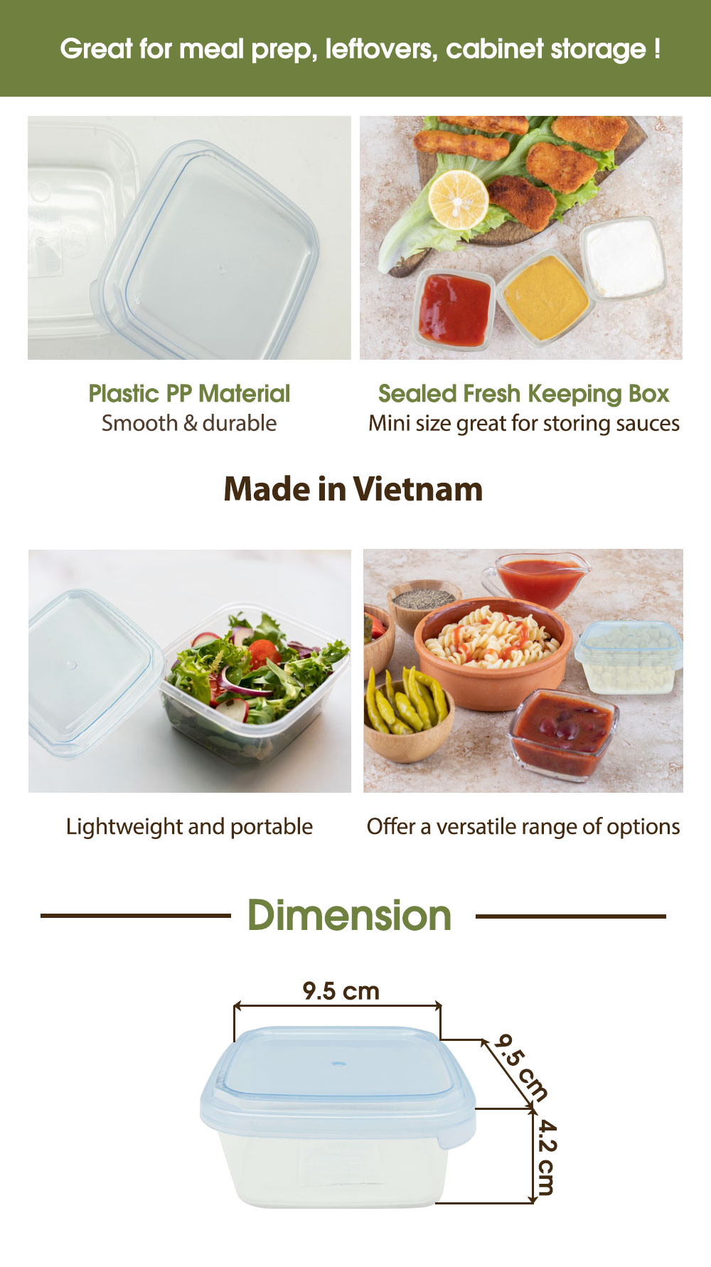 Made in Vietnam 220 ml Plastic Square Food Container – Mini Reusable PP Storage Box
