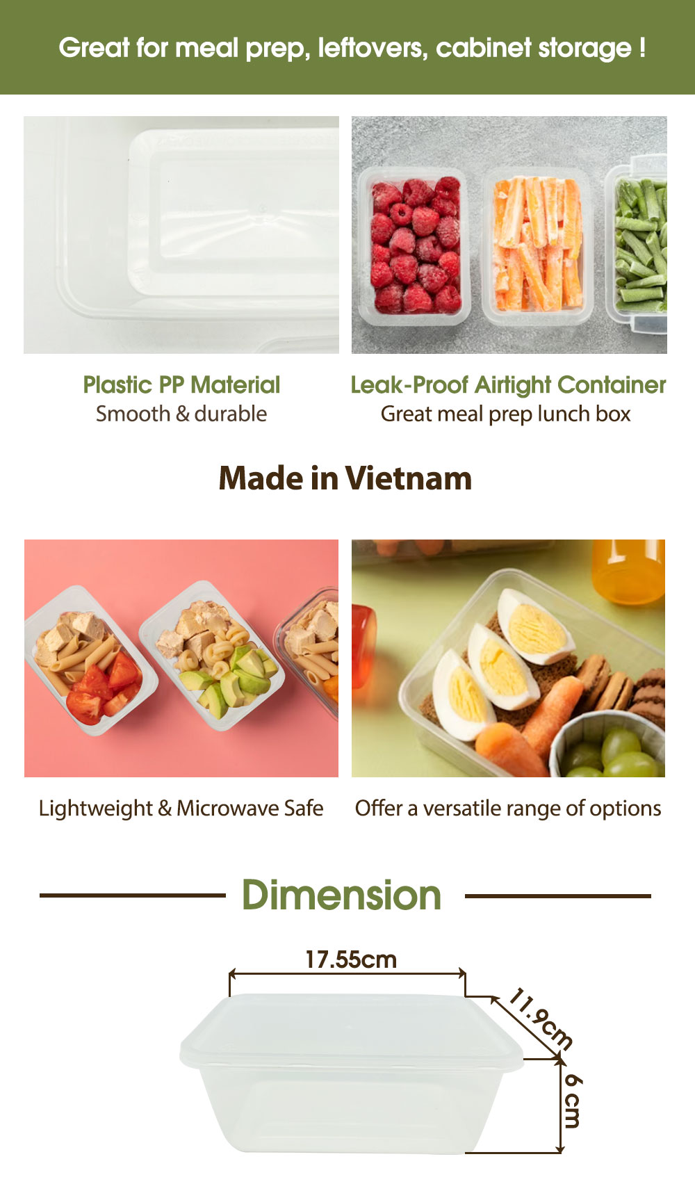 Made in Vietnam 750 ml Plastic Rectangular Food Container – Clear Microwave-Safe Storage Box