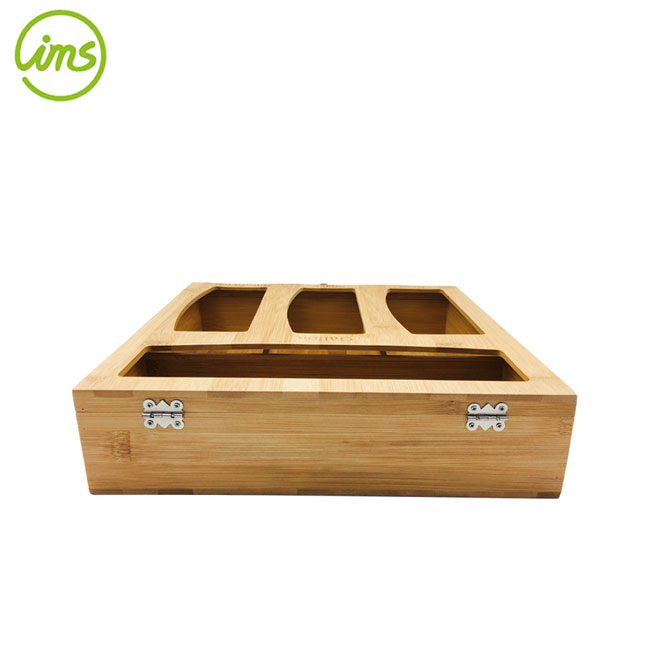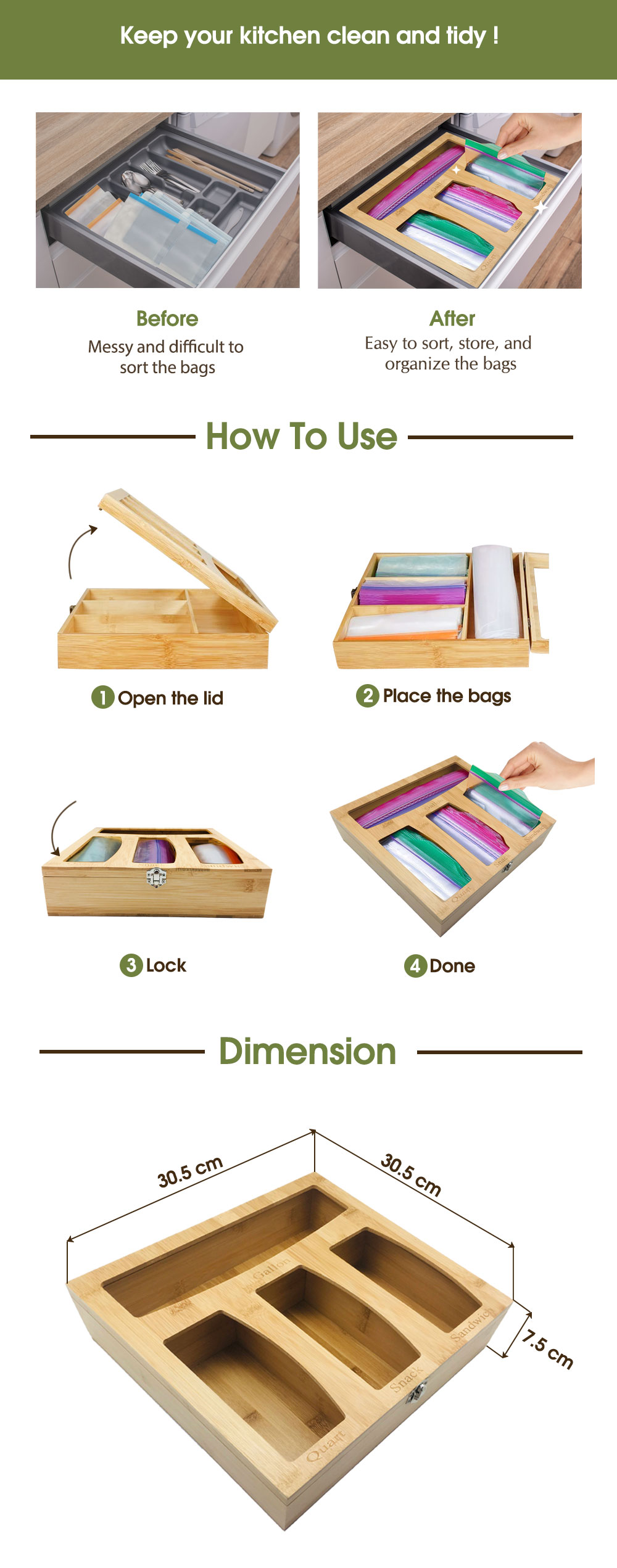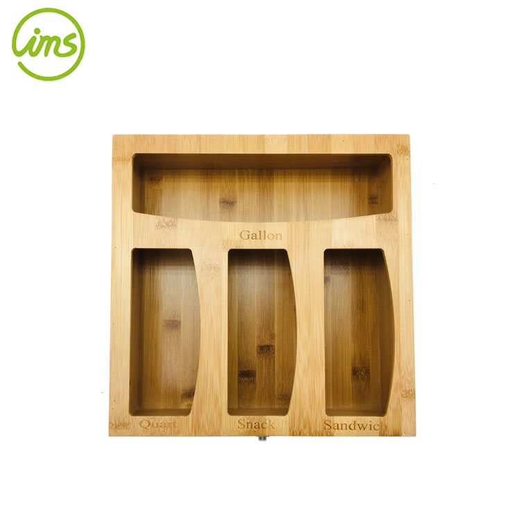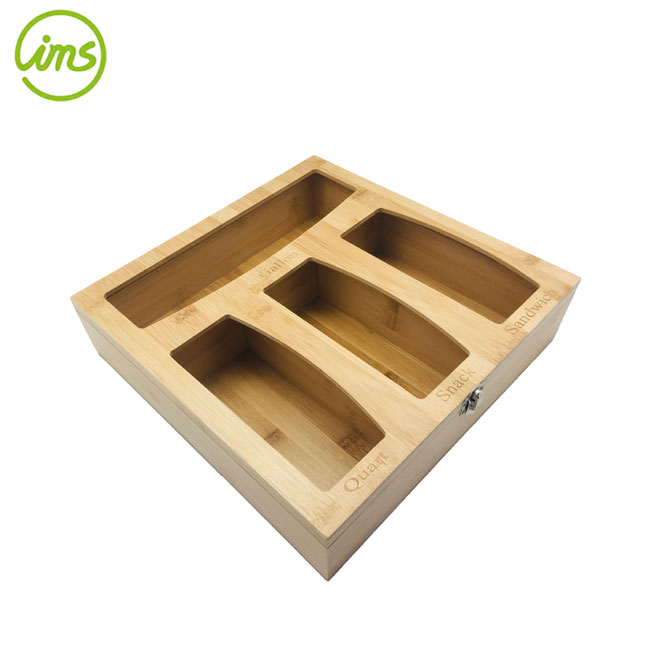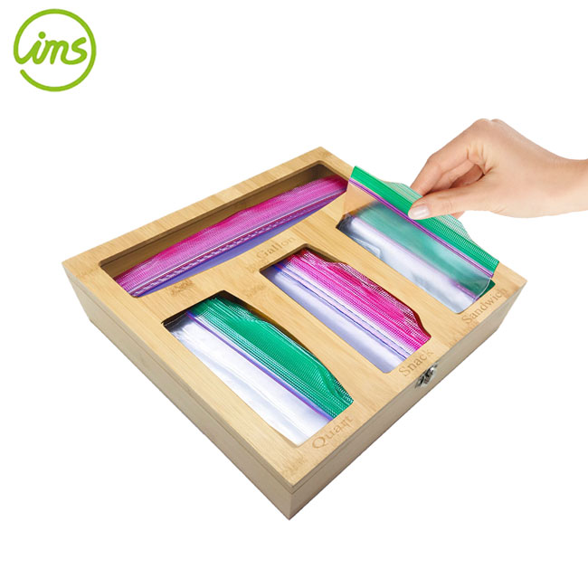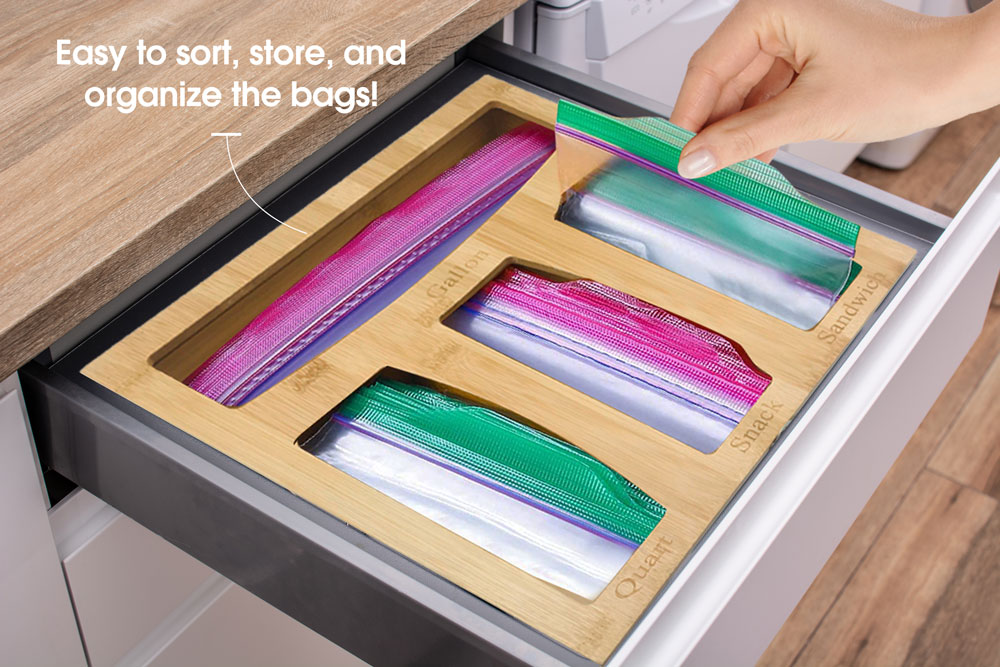 Bamboo Ziplock Bag Storage Organizer – 4-Size Drawer Box for Kitchen Bag Storage