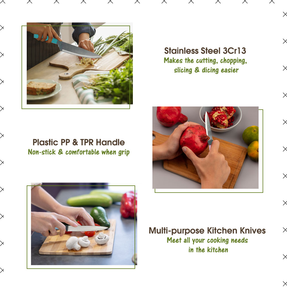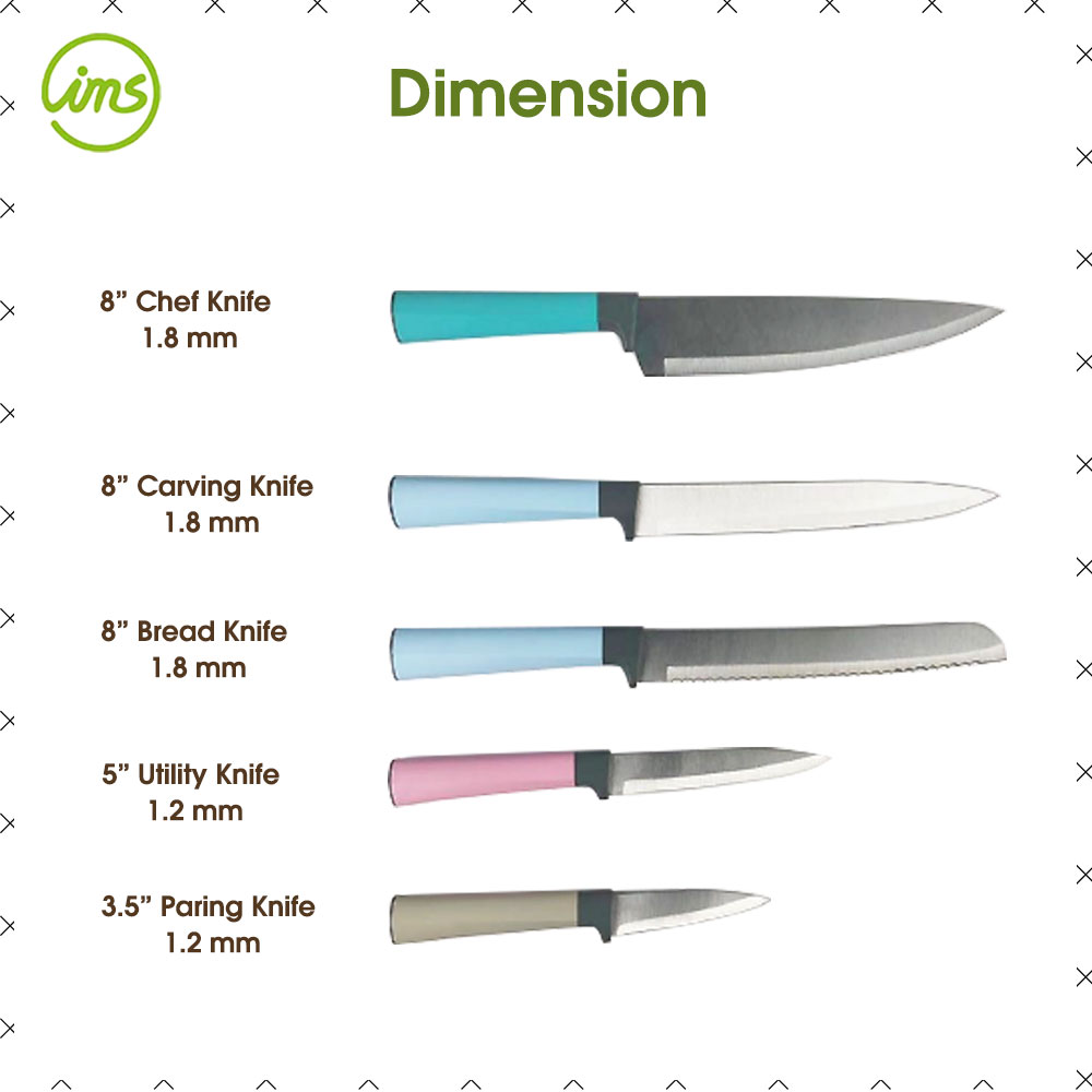 Vibrant Multi-Colored Handles: Adds personality and helps differentiate knives by function.