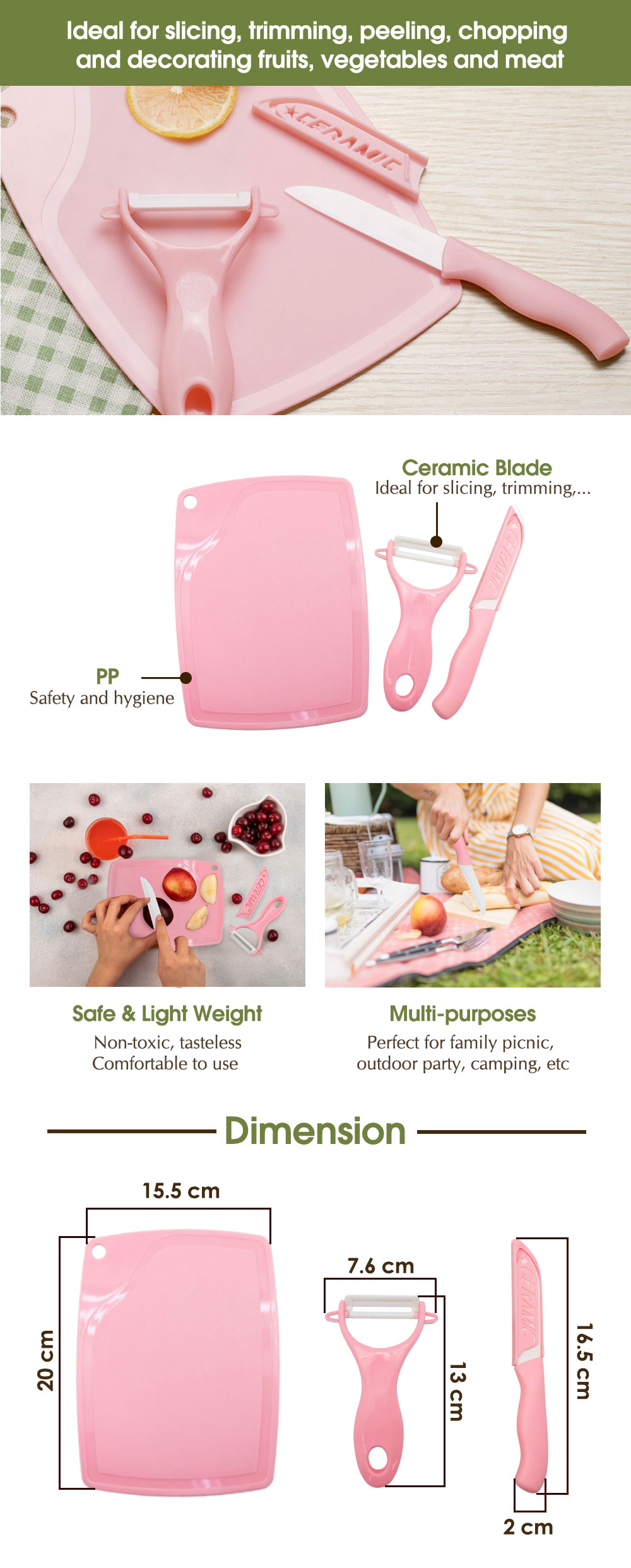 Mini Kitchen Ceramic Knife, Peeler & Cutting Board Set – Lightweight 3-Piece Cooking Set