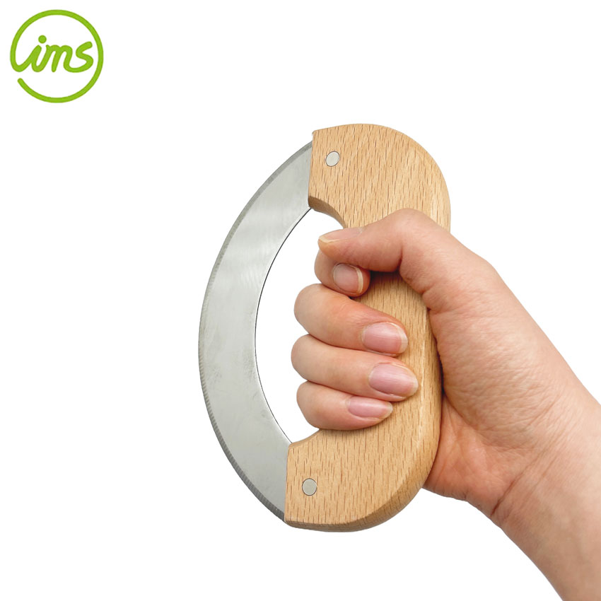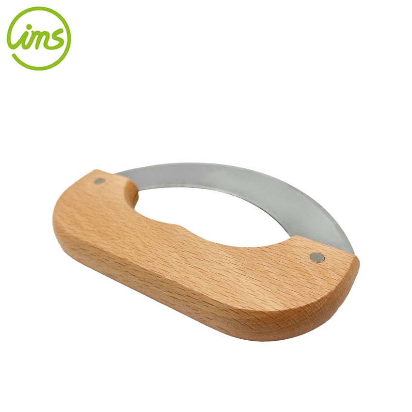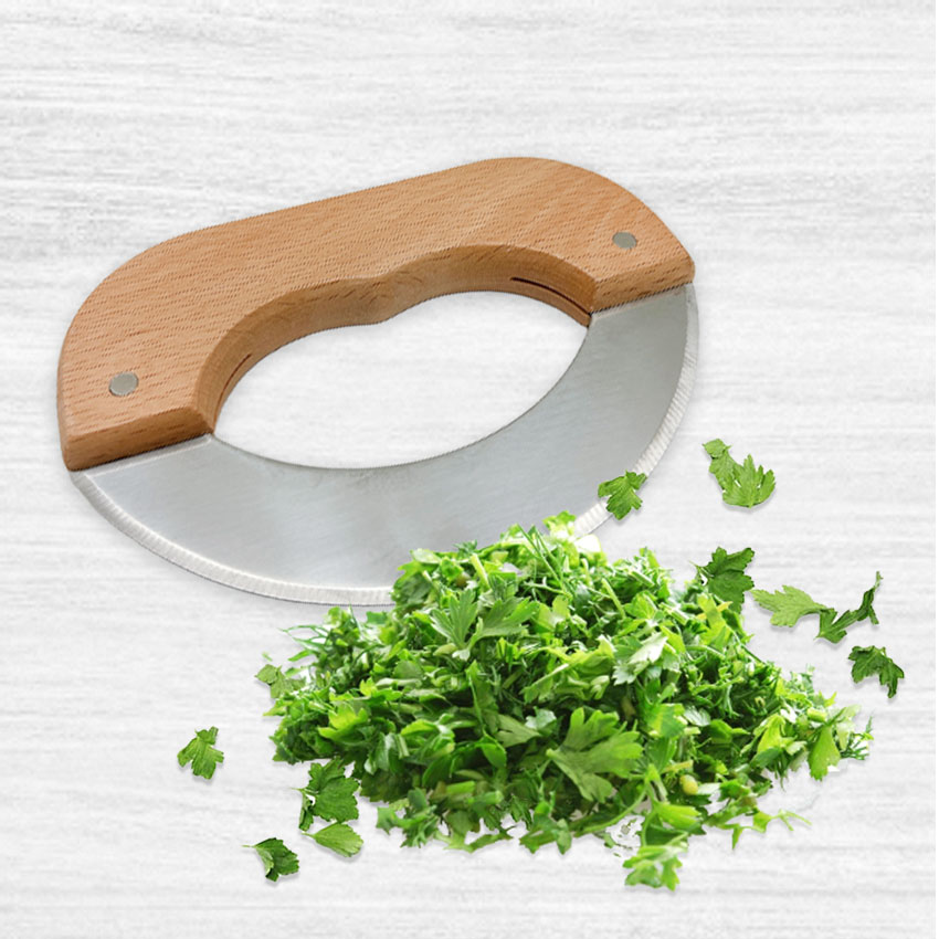 Stainless Steel Mezzaluna Knife – Herb & Vegetable Chopper with Beechwood Handle