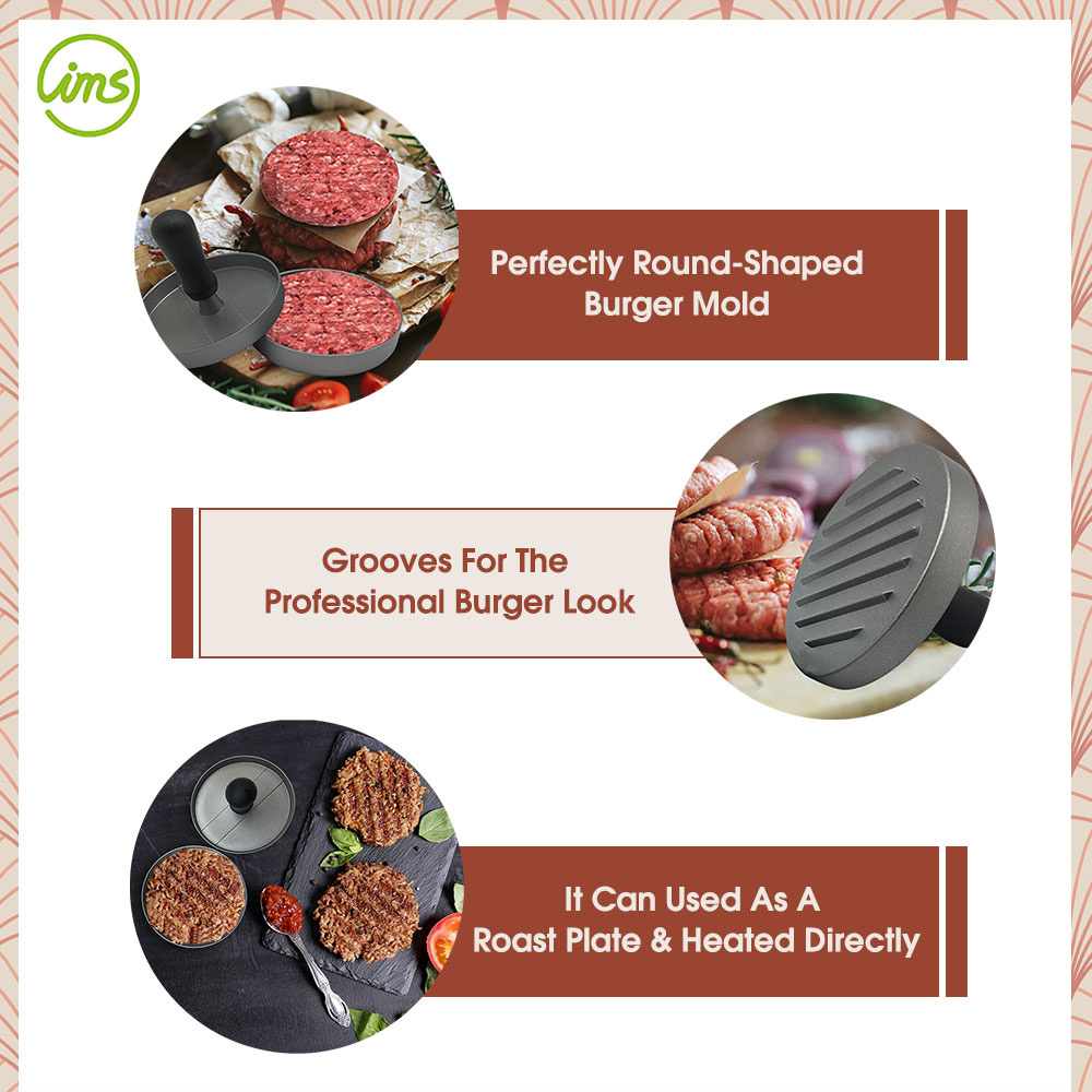 Made from high-quality aluminum with a non-stick coating for easy patty release