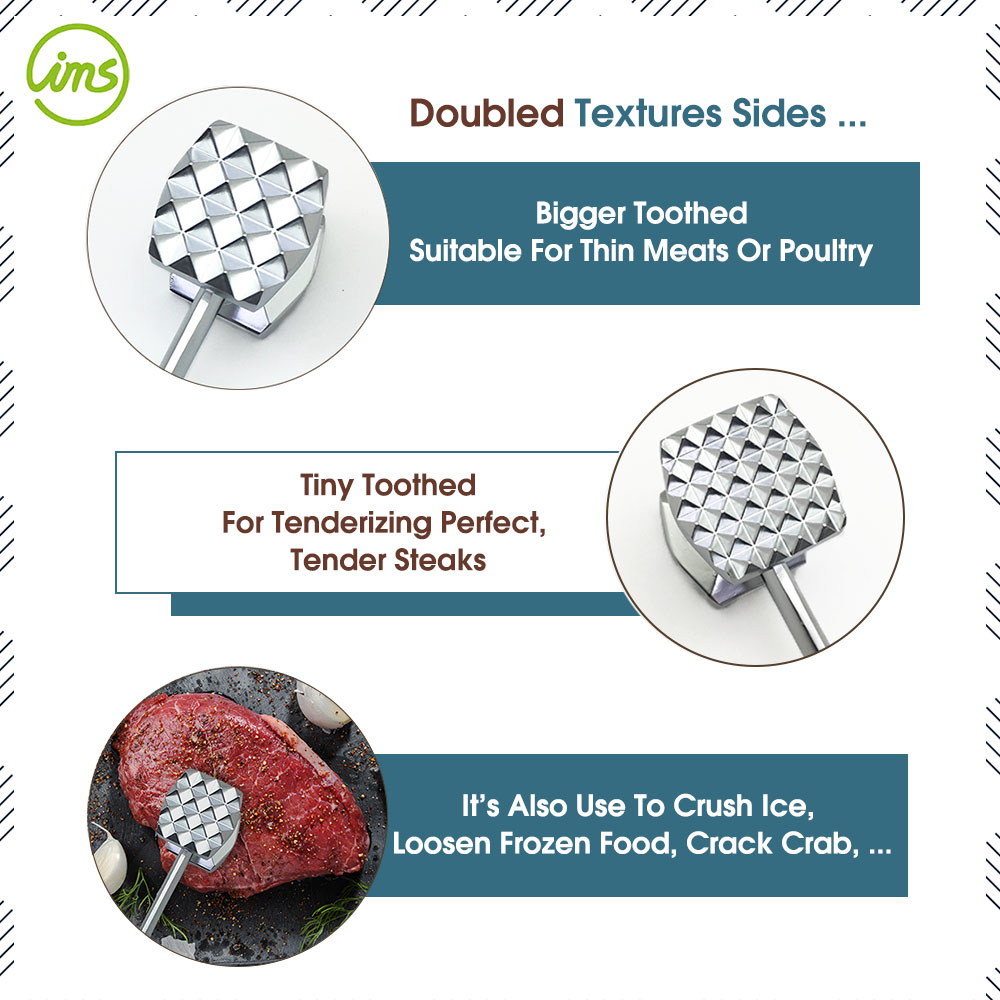 Perfect for flattening chicken breasts, softening beef steaks, and preparing pork chops. Also suitable for breaking down crab shells, loosening frozen food, or even crushing ice for cocktails. This versatile mallet ensures professional results in both everyday cooking and special occasions.