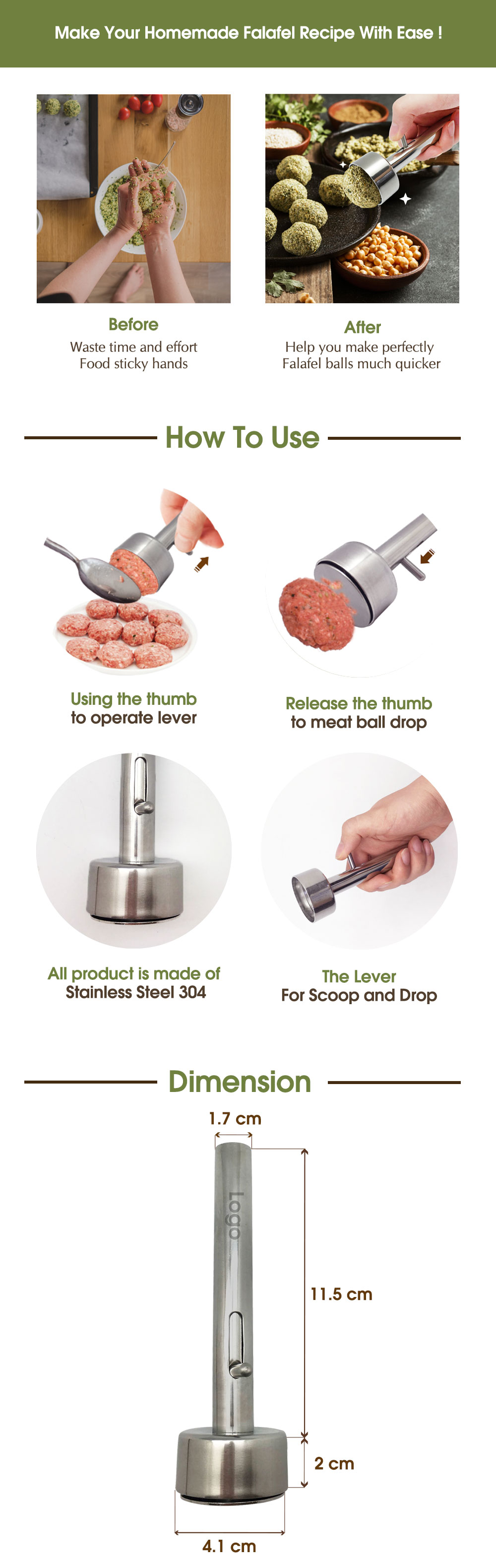 Perfect for preparing authentic Middle Eastern falafel, homemade meatballs, cookie dough portions, rice balls, and more. Ideal for home kitchens, meal prep, and anyone who enjoys cooking with precision and efficiency.