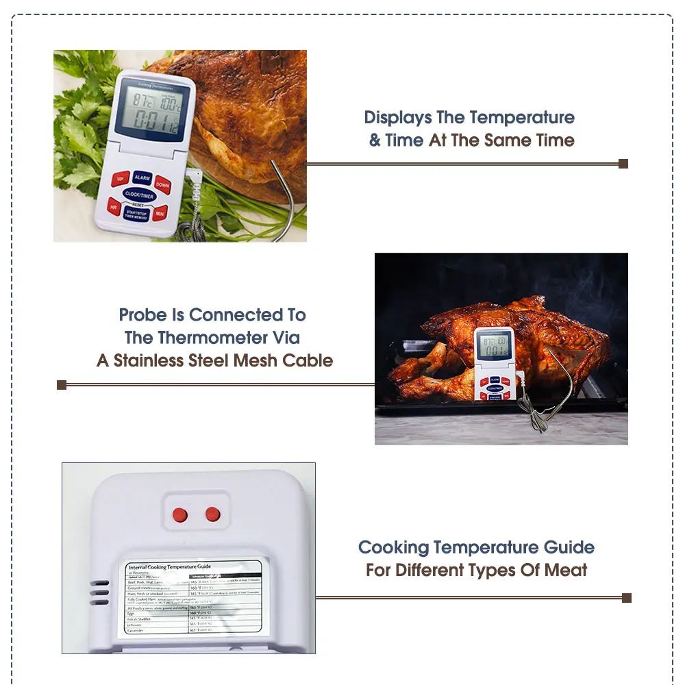 Cooking Thermometer – Digital Probe Thermometer with Timer & Alarm