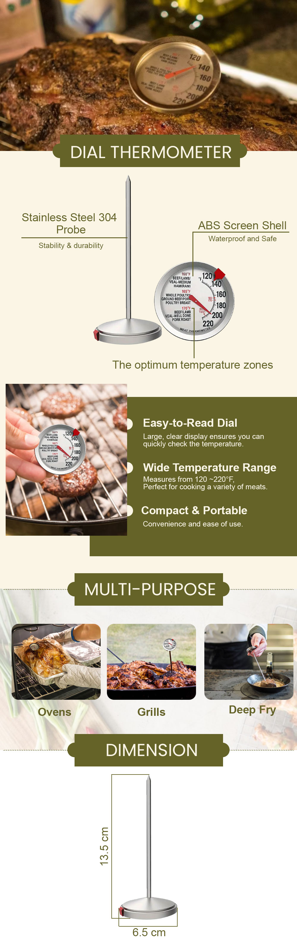 Designed with a durable stainless steel probe and a large, clear dial, it ensures accurate temperature readings for safe and delicious results every time.