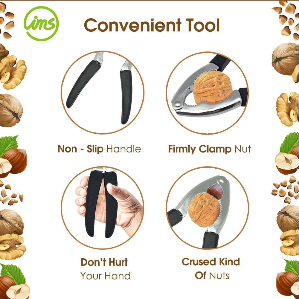 Designed to crack walnuts, hazelnuts, almonds, pecans, and seafood shells