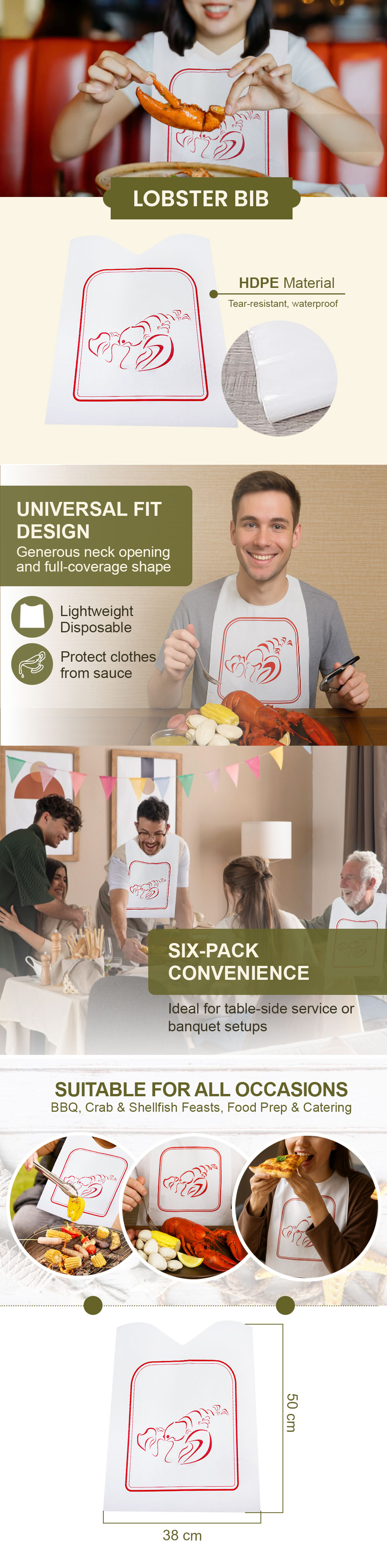 6 Pack Disposable Lobster Bibs – HDPE Waterproof Crab Aprons for Seafood Dining